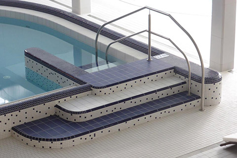 Městský bazén v Mladé Boleslavi. Použité obklady a dlažby: SERAPOOL, mozaiky: The Mosaic Factory.