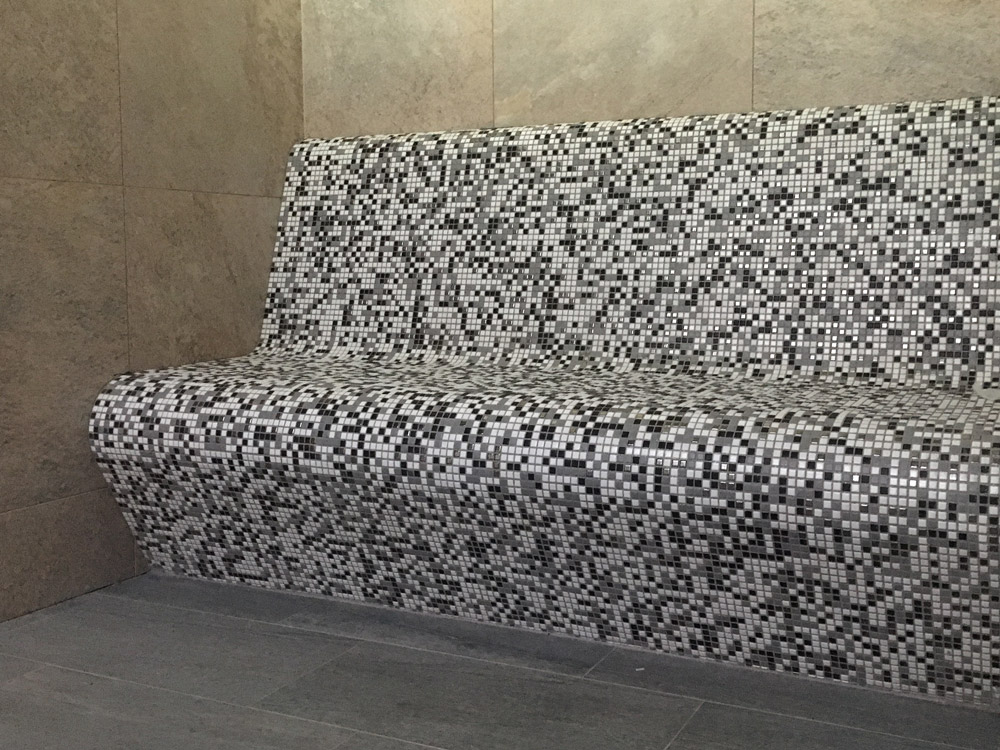 Hotelový wellness. Použité skleněné mozaiky: HISBALIT.