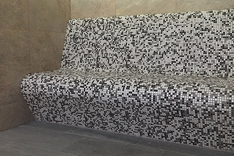 Wellness v městském bazénu Kralupy. Použité skleněné mozaiky: HISBALIT.